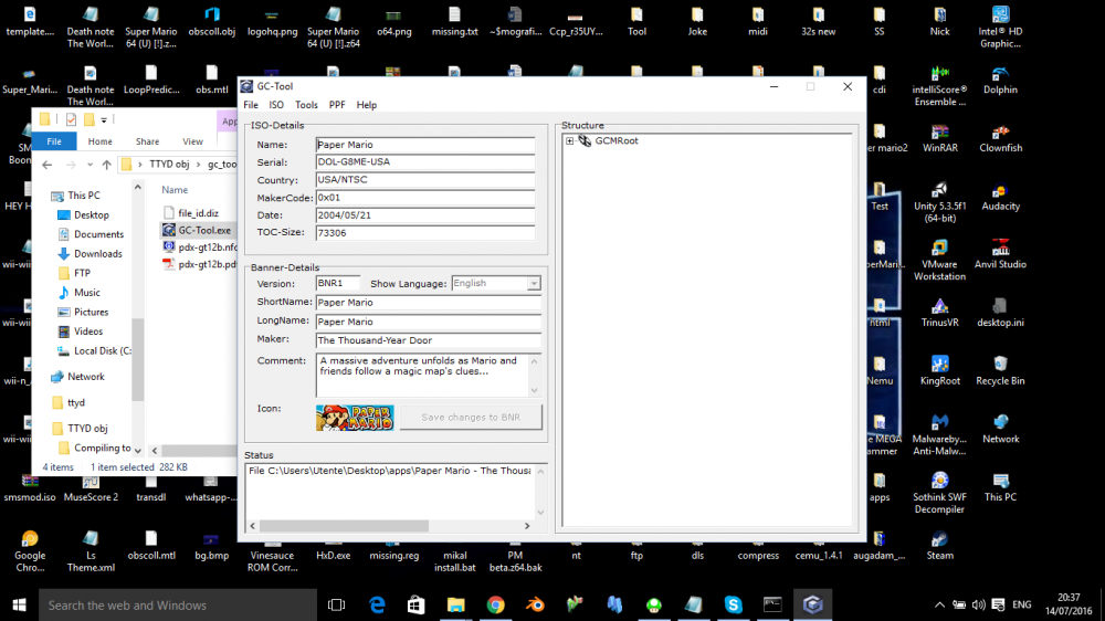 To extract files from GCN ISOs, you must open GCTool as admin, and open up your Paper Mario TTYD ROM, after doing so, it should look like this: