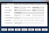 The Level Settings tab contains controls for terrain, music, environment, background, fog, and entry point.