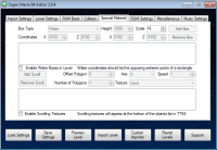The Special Material tab allows adding of water boxes, lava, haze, and scrolling textures.